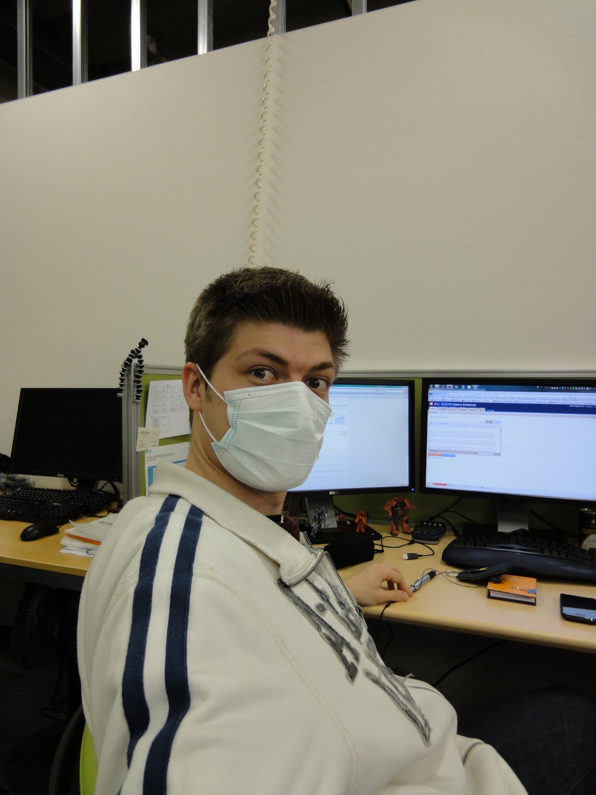 12:10 pm - As a result of the hydrogen explosion at reactor 3 up in Fukushima plant 1, we've all put on masks at work as a precaution. We're just under 200 miles away, and the wind is supposedly blowing north, northwest, but you can never be too careful. This is the first time I've ever worn a mask by the way.